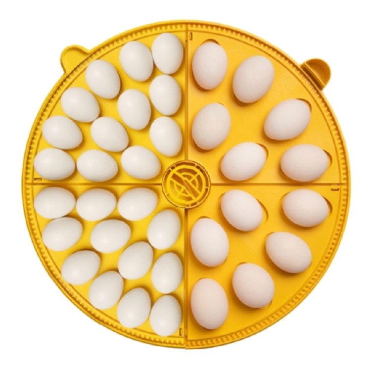 Veľkou prednosťou tejto liahne je systém štyroch kvadrantov, ktoré je možné kombinovať podľa aktuálnej potreby. Vnútri tak môžete pripraviť priestor pre štandardné, väčšie aj menšie vajcia a lepšie prispôsobiť kapacitu konkrétnemu chovu. To je praktické ako pre bežné hydinové vajcia, tak pre vzácnejšie plemená alebo menšie druhy vtáctva. K liahnu sú štandardne dodávané kvadrantové držiaky na slepačie a kačacie vajcia.