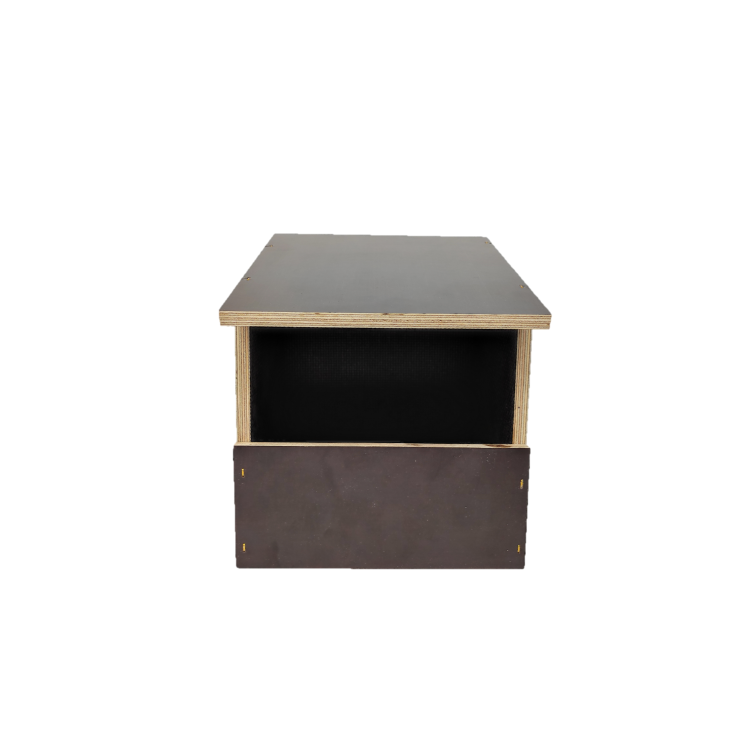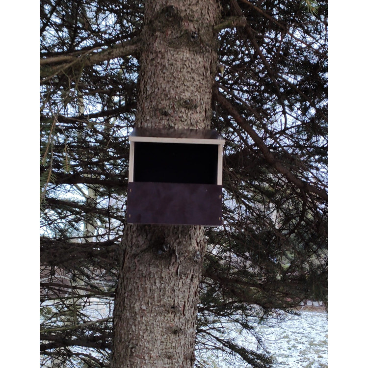Tento model vtáčej búdky je vyrobený z vodeodolnej brezovej preglejky tej najlepšej kvality s hrúbkou 9 mm a pokryté fenylovým filmom. Je možné ho inštalovať na fasády budov, na miesta vystavené dažďu.
