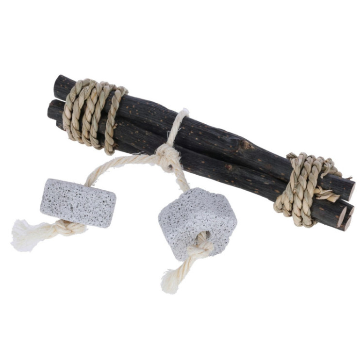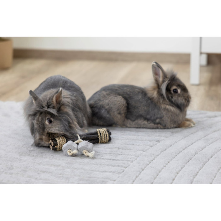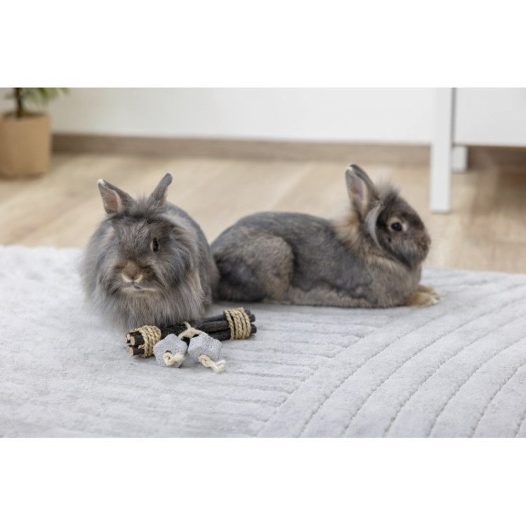 Táto hračka pre králiky a hlodavce spája prírodné vetvičky, sisal a lávový kameň do zábavnej a zdraviu prospešnej formy hry.