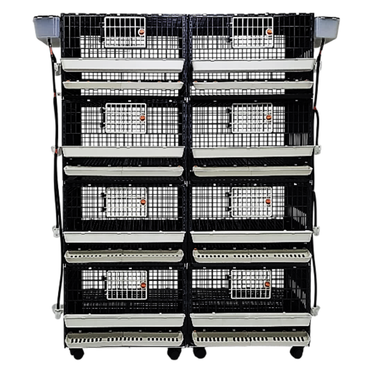 Systém je určený na stohovanie a stabilnú prevádzku vo viacerých poschodiach. Každé poschodie je istené 9 zámkami, vďaka čomu je zostava pevná a spodná klietka bez problémov unesie hmotnosť ďalších nadstavieb. Pri bežnej prevádzke tak neriešite prehýbanie ani potrebu dodatočných podpier.