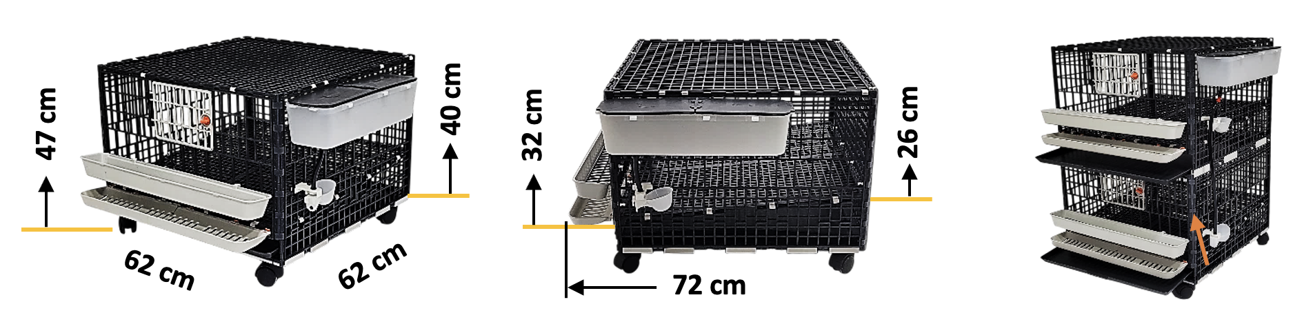 Klietka je z odolného antracitového plastu, ktorý sa ľahko čistí a pri kontakte s trusom nekoroduje.