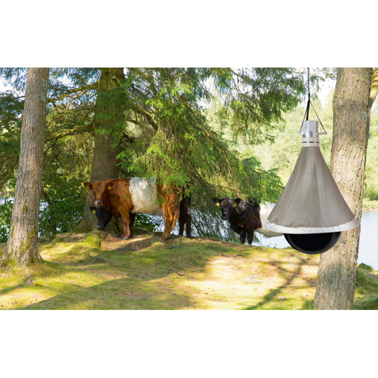 TaonX Eco je verzia lapača ovadov TaonX pre situácie, keď nie je možné (alebo nechcete) kotviť konštrukciu do zeme. Lapač jednoducho poskladáte a zavesíte napríklad na strom pomocou dodanej článkovej reťaze. V blízkom okolí pomáha znížiť výskyt ovadov až o 95 % a je úplne netoxický, takže dáva zmysel pre chovateľov na pastvinách aj v okolí výbehu.
