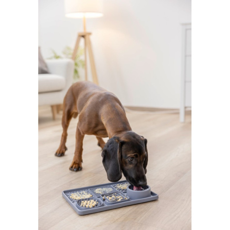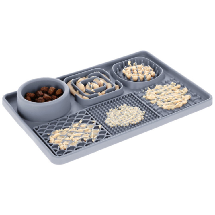 Lízacia podložka pre psov XL s miskou, 30 x 20 cm, sivá