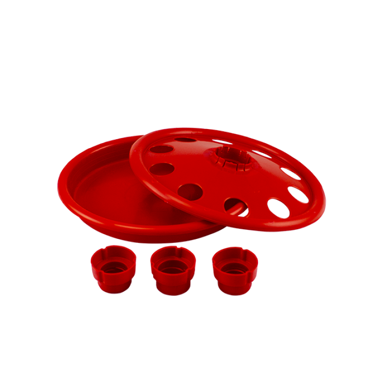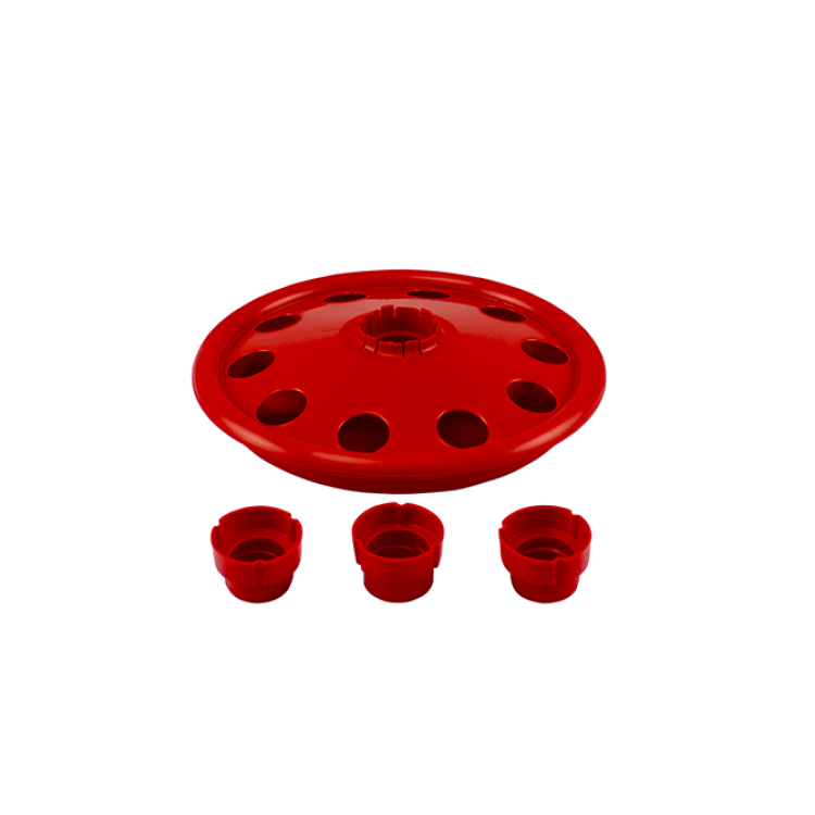 Napájačka pasuje na väčšinu bežných plastových fliaš a vďaka trom priloženým adaptérom ju ľahko naskrutkujete na to, čo máte práve po ruke. Ideálne pre malé chovy až do 50 kurčiat v prvých dňoch po vyliahnutí.