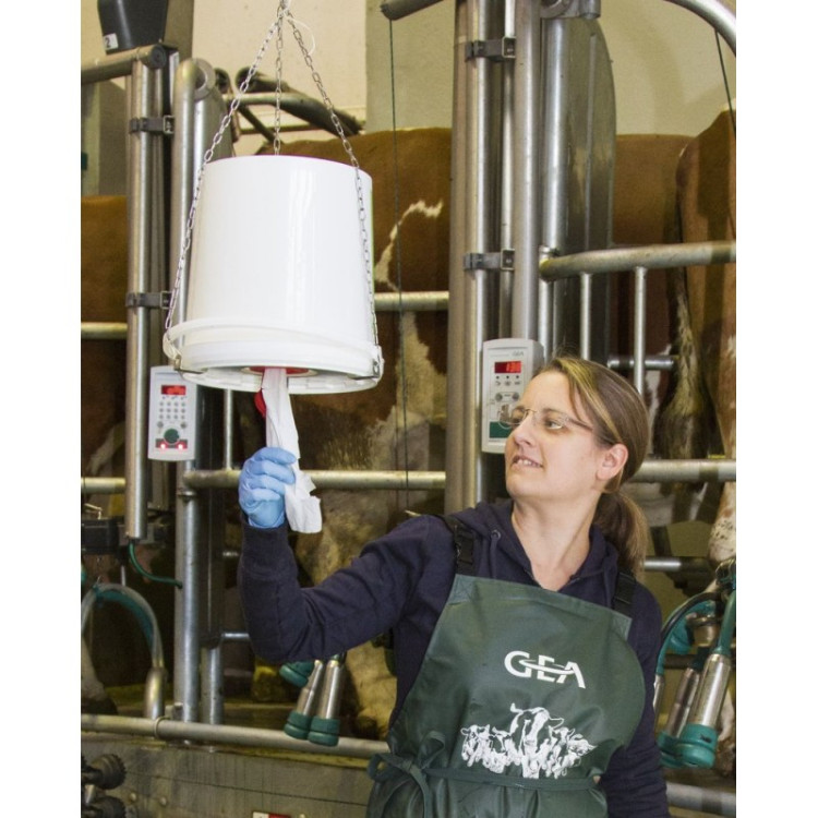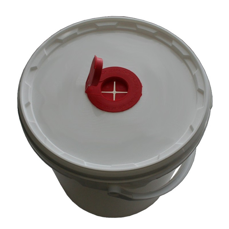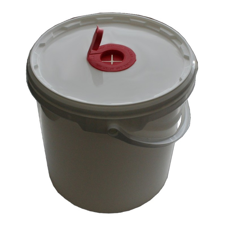 Hygienické vedierko na utierky . Vedro sa používa na papierové vlhčené utierky . Je uzavreté vekom so stredovým otvorom, ktorým sa odmotávajú a odtrhávajú jednotlivé útržky papierových utierok zaliatych umývacím a dezinfekčným roztokom (Apol First, Trionet).