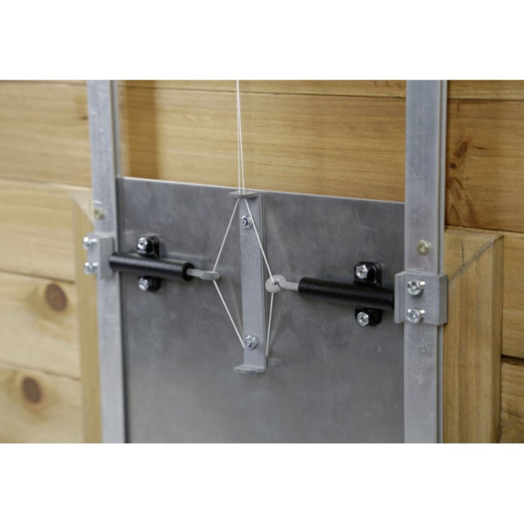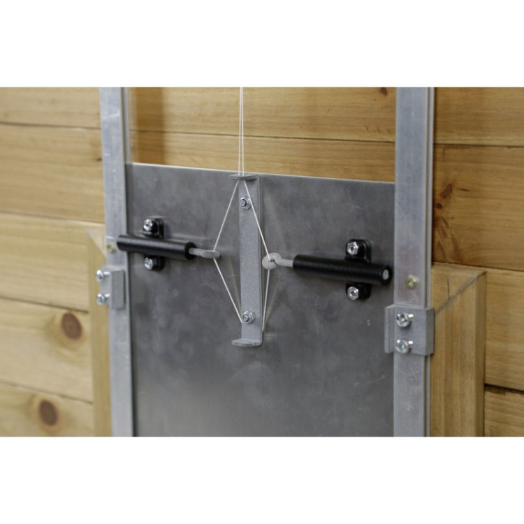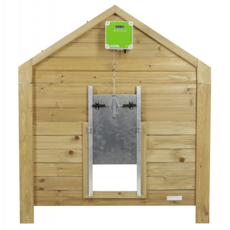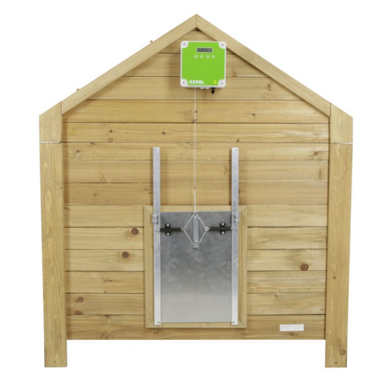 Automatická ochrana hydiny proti predátorom. Po manuálnom nadvihnutí dvierok sa povrázok povolí a vyjdú západky, ktoré nedovolia vďaka zarážkam dvierka nadvihnúť vyššie. Pri otvorení dvierok sú západky uvoľnené ťahom šnúrky.